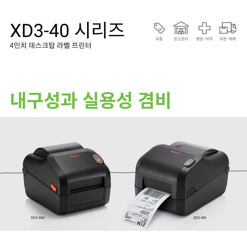 BIXOLON XD3-40D, XD3-40D 라벨프린터, XD3-40D 바코드 프린터, XD3-43D 300dpi, 4인치 라벨프린터, 열전사 라벨프린터, 데스크탑 라벨프린터, 택배 송장 라벨프린터, 203dpi, 이더넷 라벨프린터, 와이파이 라벨프린터, 물류창고 바코드 라벨프린터, 입출고 라벨프린터, 제조라인 라벨 프린터