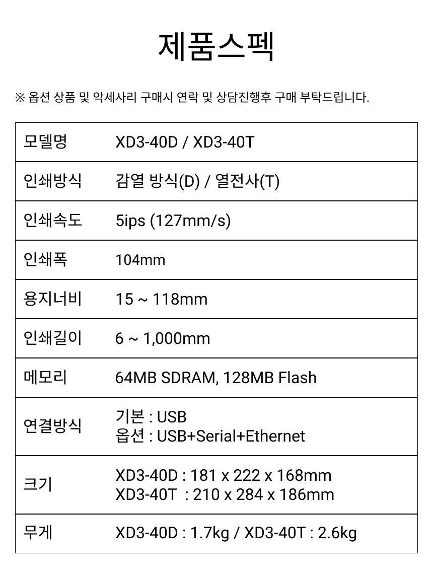 빅솔론 XD3-40D 감열식 바코드 라벨 프린터