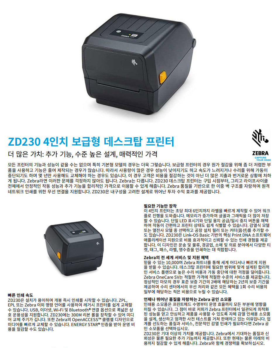 Zebra ZD230D, 제브라 ZD230D 라벨프린터, ZD230D 바코드프린터, ZD230 라벨프린터, ZD230D 드라이버, ZD230D 가격, 4인치 라벨프린터, 감열 라벨프린터 4인치, 택배 라벨프린터, 라벨프린터 203dpi, ZPL 호환 라벨프린터, EPL 호환 라벨프린터, USB 라벨프린터, 이더넷 옵션, 이더넷 라벨프린터, 택배 송장 라벨 프린터, 물류 입출고 라벨프린터, 쇼핑몰 배송라벨 프린터, 매장 바코드 라벨 프린터, 간단 재고관리 라벨프린터