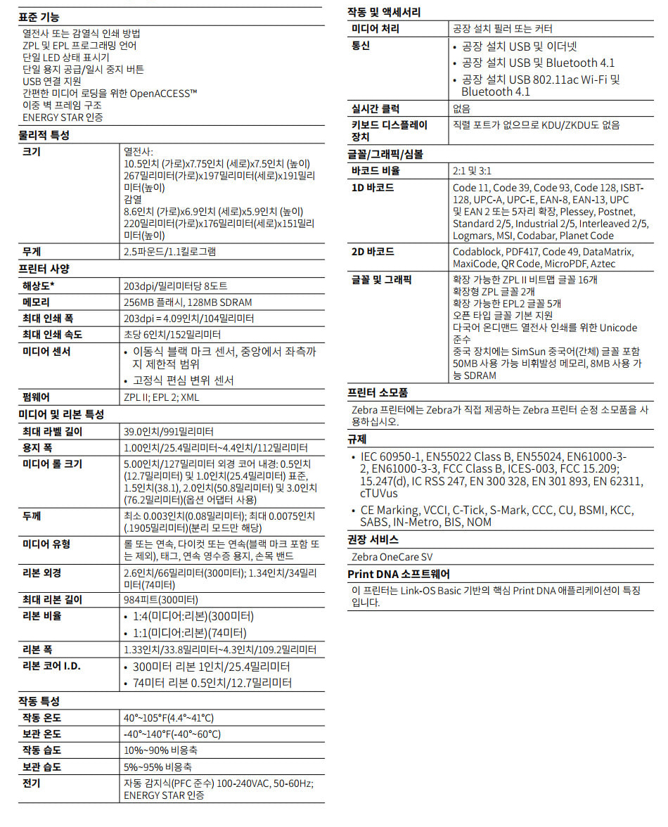 ZEBRA ZD230D 감열식 바코드 라벨 프린터
