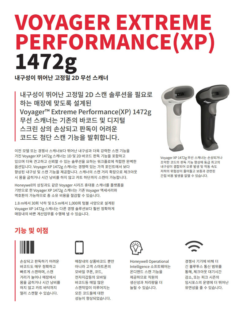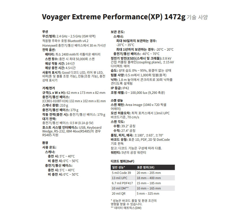 하니웰 Voyager XP 1472G QR코드스캔 무선 바코드 스캐너
