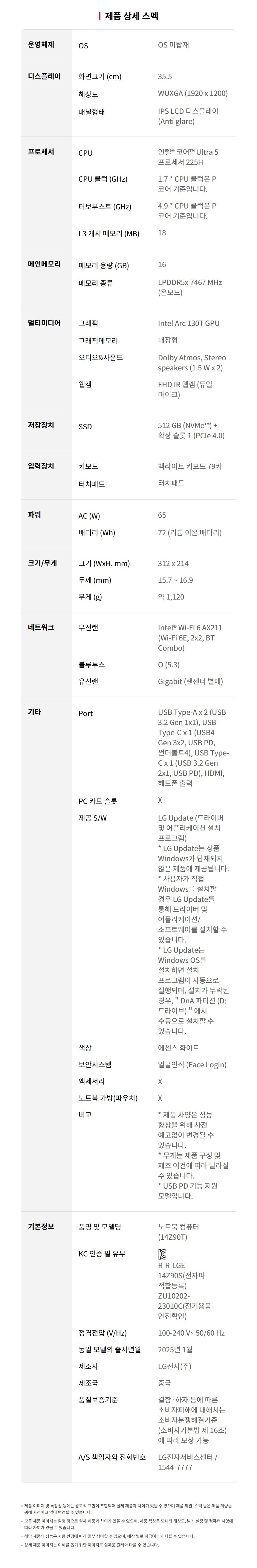 LG전자 그램 14ZD90T-GX50K 코어 울트라5 램16GB 512GB 14인치 가성비 노트북